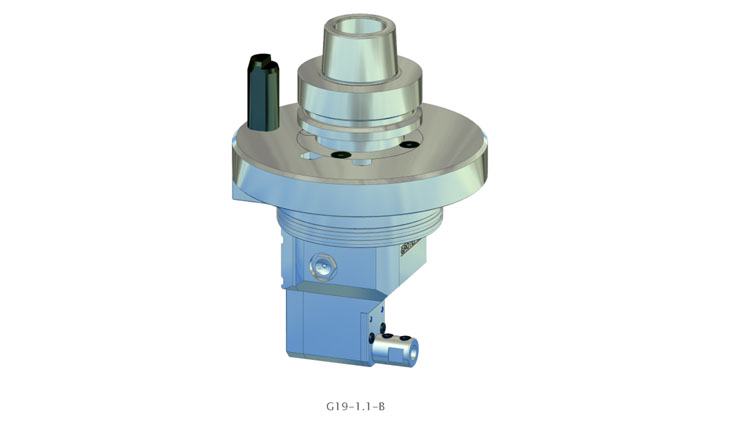 G19 系列的角頭用于工件的端面鉆孔。特殊之處在于從裝置底部到鉆架中間的尺寸非常小,僅為 7.5 毫米。這使它z。B. 在嵌套過程中制造的可能在銑削后立即進行橫向鉆孔的零件。鉆座區域內的外殼寬度僅為 24mm。